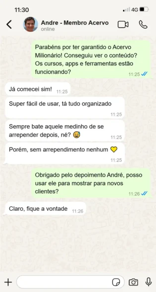 Imediatamente após a confirmação do pagamento, você receberá um e-mail com todas as instruções para acessar o Acervo Milionário.